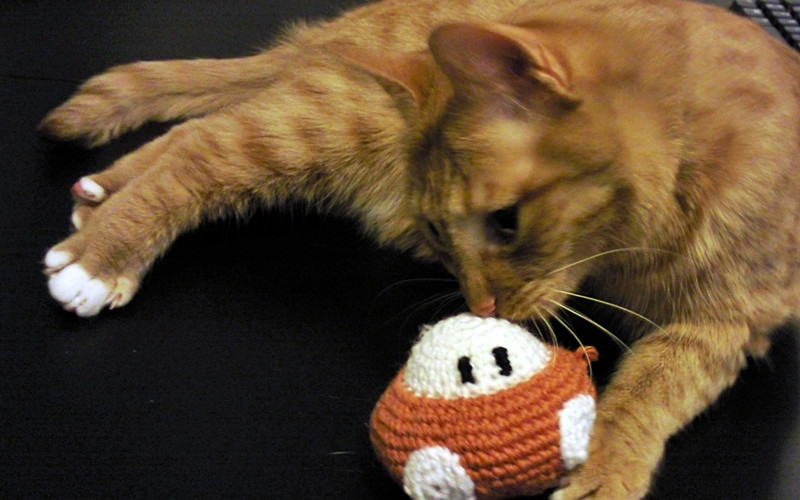 A late Christmas present for the cats: 1up mushrooms stuffed with catnip.