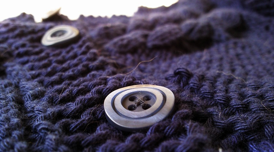 I used stash yarn for this little cardi, in an attempt to use up some cotton leftovers. There’s three different yarns in the project, all a slightly different shade of navy. And the buttons are not all the same – I only had five matching ones but needed 7. It’s a Frankenstein cardigan!