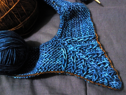 I’m using tosh merino light in Baltic and Glazed Pecan – you can never go wrong with Madelinetosh! Besides, it's Mad May.